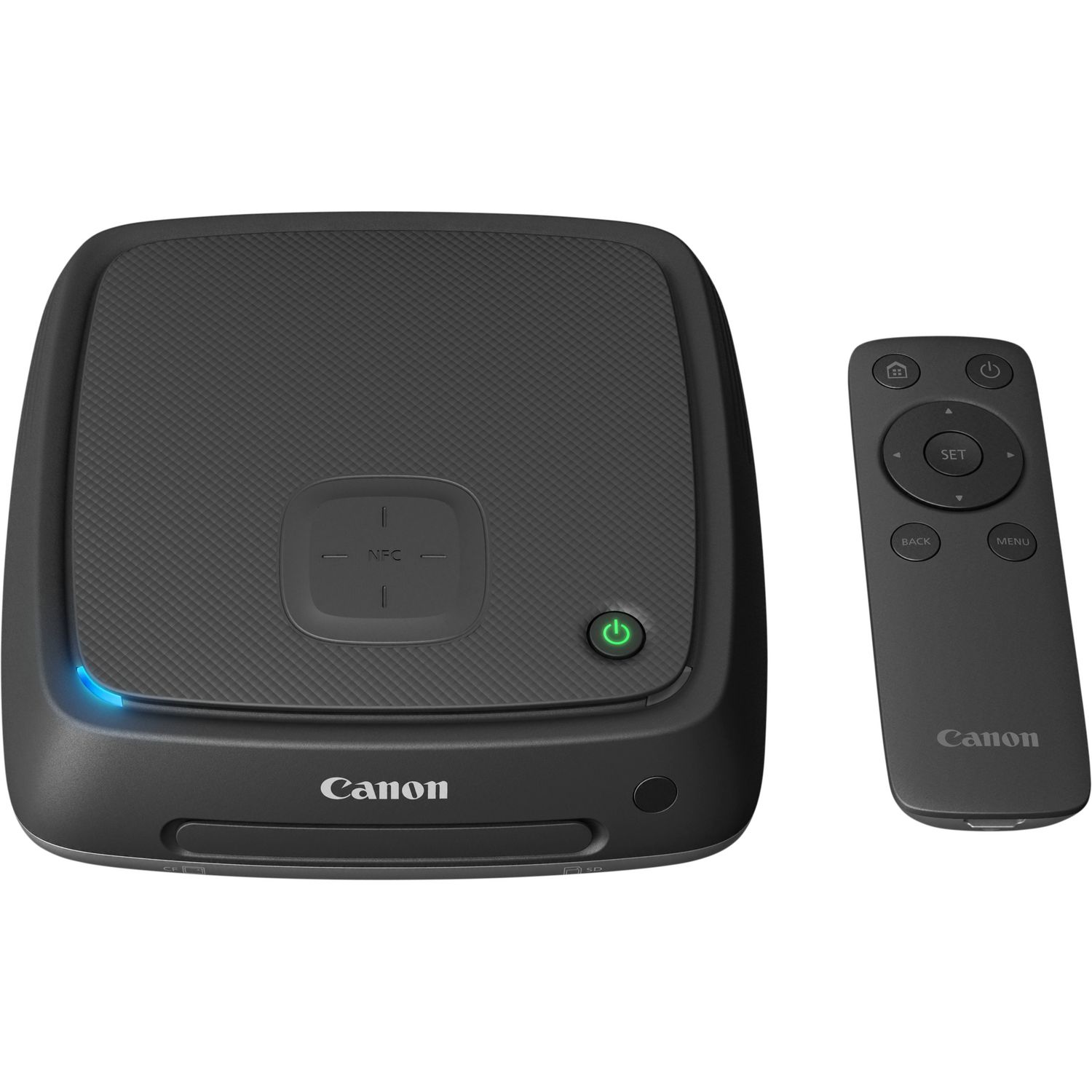 - Import images and movies wirelessly by tapping a compatible NFC-equipped Canon camera* against the CS100 – your files will be transferred automatically over your home Wi-Fi network. You can also import pictures using the built-in SD/CompactFlash memory card slot or from a PC over your home network. Users of the Connect Station App can also wirelessly import pictures and movies from their smartphones too.†‡